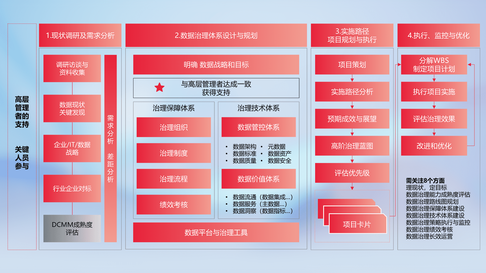 制定并执行统一的数据标准,,,规范数据定义和格式,,,,消除冗余和不一致性,,实现跨部门和跨系统的数据一致性,,为企业提供标准化的数据基础。。。